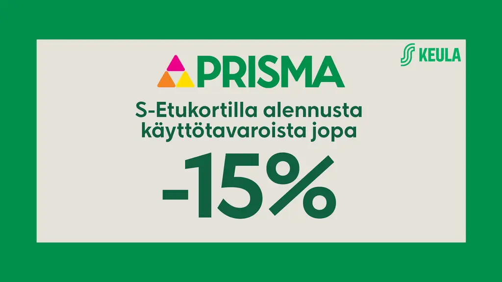 Prismasta S-Etukortilla alennusta käyttötavaroista jopa -15 %