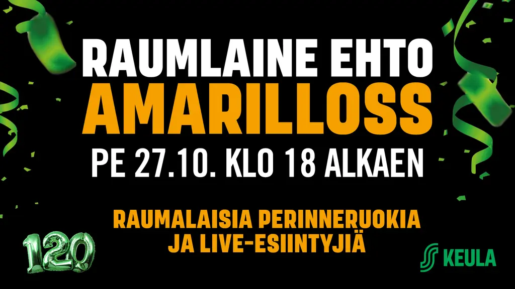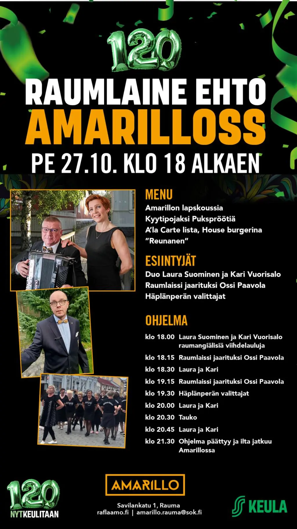 Tervetuloa viettämään raumalaista iltaa Amarilloon perjantaina 27.10. klo 18 alkaen