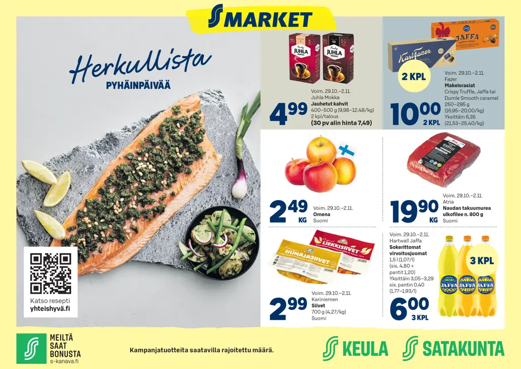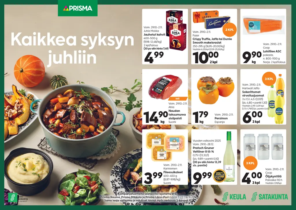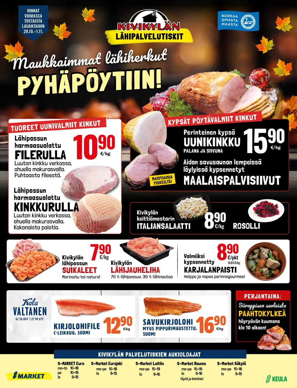 Hintaedut voimassa Rauman PrismassaHintaedut viikko 44Hintaedut voimassa S-marketeissaHintaedut viikko 44Kivikylän edutHintaedut viikko 44Lokakuun Keulaedut S-mobiilissa