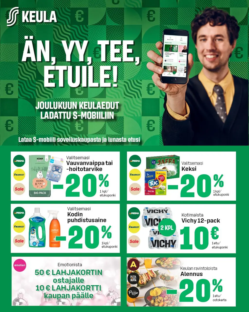 Ajankohtaista12.11.2025UUTINENAsiakasomistajapäivät Prismassa 12.-16.11.2025S-Etukortti14.10.2025UUTINENRobokuljetukset veloituksetta 26.10. saakkaS-Etukortti10.10.2025UUTINENDigineuvontakiertue Keulan toimipaikoissa 15.-24.10.S-Etukortti10.10.2025UUTINENSuper-Tilipäivän edut 10.10.S-Etukortti6.10.2025UUTINENAnsa – Asiakasomistajan ennakkonäytös Rauman teatterissa 24.10.S-Etukortti2.10.2025UUTINENAlbatrossi ja Heiskanen S-Etunäytös 15.10. BrummissaS-EtukorttiSiirry edelliselle sivulleEdellinen1Siirry sivulle 12Siirry sivulle 23Siirry sivulle 34Siirry sivulle 45Siirry sivulle 5…10Siirry sivulle 10Siirry seuraavalle sivulleSeuraava